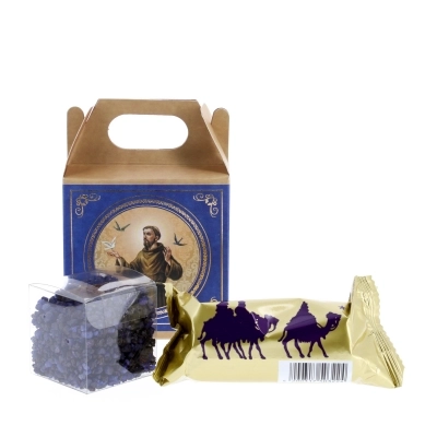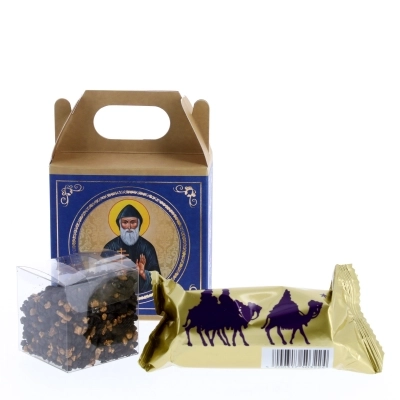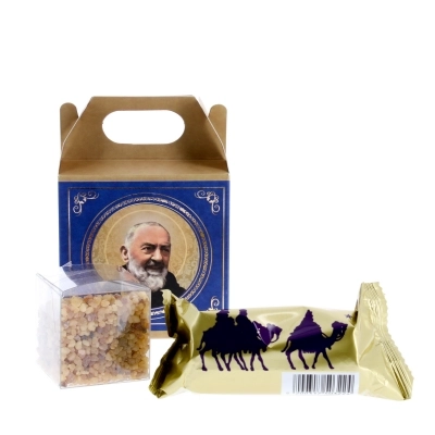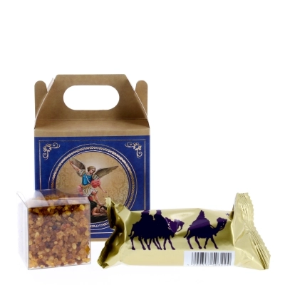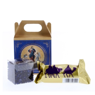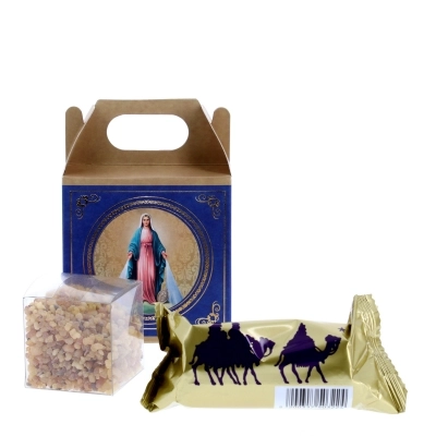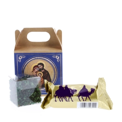 Confezione composta da incenso profumato e un blister da 5 carboncini, il tutto racchiuso in una scatolina in carta stampata con diversi soggetti. In ogni soggetto è presente una profumazione diversa d'incenso. Si adatta perfettamente per essere un'originale idea regalo.