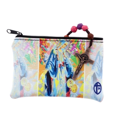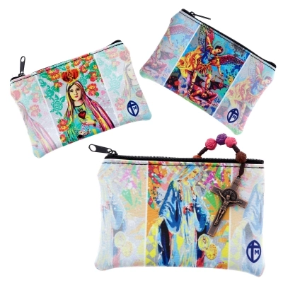 Carinissimo borsellino in ecopelle, moderno ed elegante, multifunzionale da utilizzare quotidianamente come porta rosario o più semplicemente come porta banconote o card. Le sue dimensioni lo rendono leggero e comodo da portare sempre con sè in borsa ma anche più comodamente in tasca, allo stesso tempo però è capiente e consente di inserire al suo interno più oggetti, contemporaneamente. A renderlo un prodotto originale e di devozione sono i bellissimi soggetti stampati, in stile Pop-Art. Realizzate in Italia, appositamente per Editrice Shalom, che ha seguito personalmente la scelta dei materiali e delle grafiche.