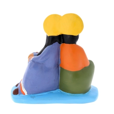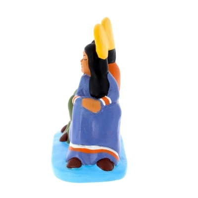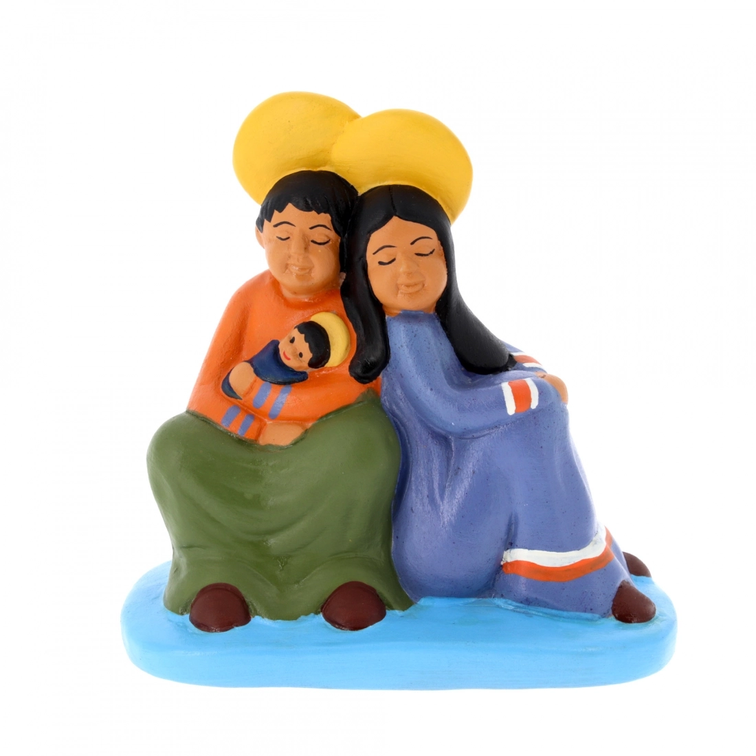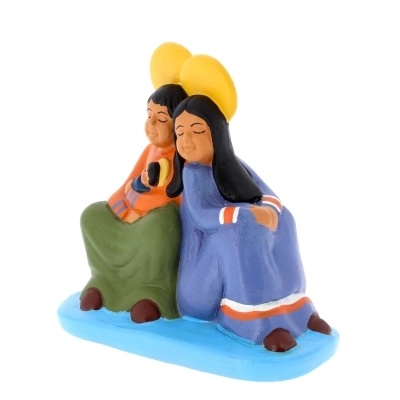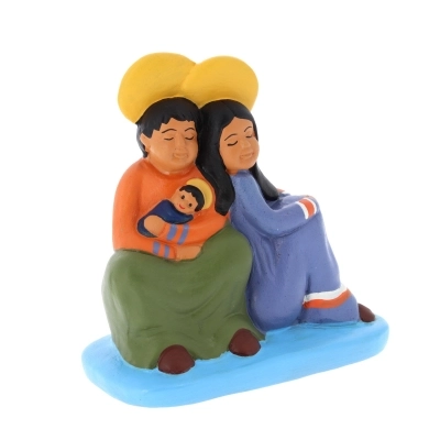 Bellissima rappresentazione della Santa Famiglia, realizzata in terracotta e dipinta completamente a mano. In questo originale presepe è il papà a tenere in braccio il Bambino. Articolo molto bello da regalare e regalarsi per Natale.