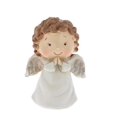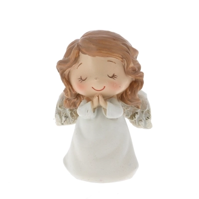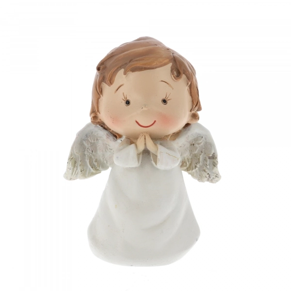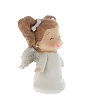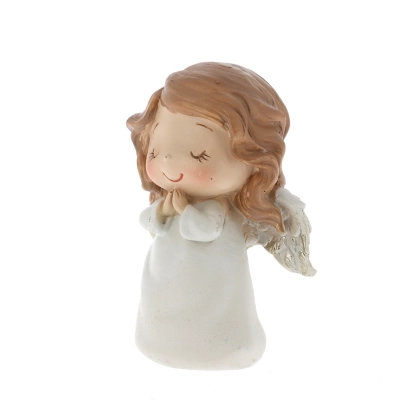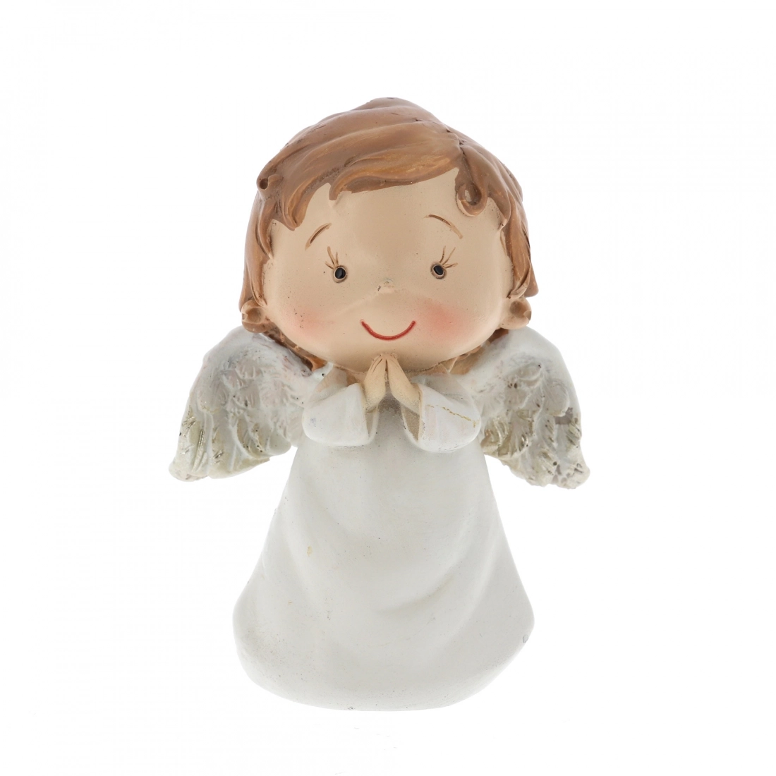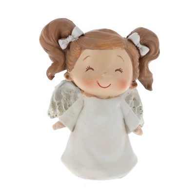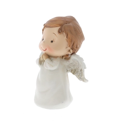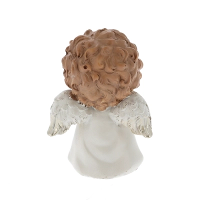 Simpatico angelo, disponibile nelle varianti bimbo e bimba, realizzato in resina bianca e dipinto a mano. L'espressione è decisamente dolce e sorridente ed è adatto ad essere inserito come soprammobile in qualsiasi ambiente della casa. L'articolo è corredato di scatola bianca. Articolo molto carino da regalare per Natale ma anche in qualsiasi occasione speciale o da usare come bomboniera.
