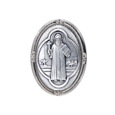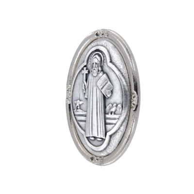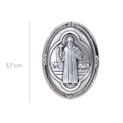 Calamita ovale in zama, con raffigurazione San Benedetto, di altezza 3,7 cm. Sul retro, oltre che il magnete, presenta anche un adesivo per consentirne l'applicazione su superfici metalliche o non metalliche. Ideale da apporre, ad esempio, sul frigorifero di casa oppure, grazie all'adesivo sul retro, lo si può apporre al cruscotto della macchina, per restare sempre sotto la protezione del santo, anche quando si viaggia in macchina. Carinissima idea regalo per chi deve affrontare lunghi viaggi o per chi passa molto tempo in macchina. Una soluzione versatile e funzionale anche per l'organizzazione e la decorazione domestica o in ufficio