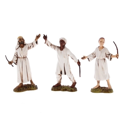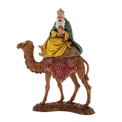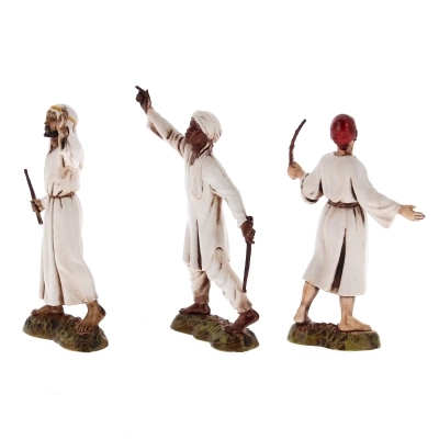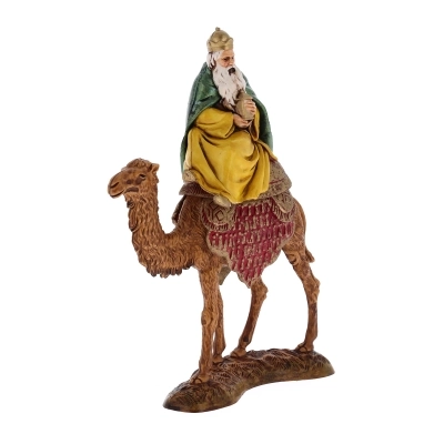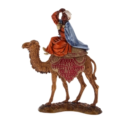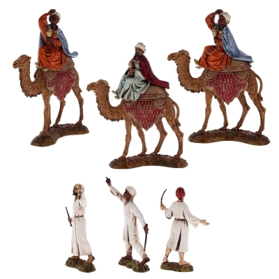 Set Re Magi sui cammelli e tre cammellieri stile '700 delle dimensioni di 10 cm. Questi personaggi per il presepe si caratterizzano per la cura nell'espressività dei volti e di ogni singolo dettaglio.