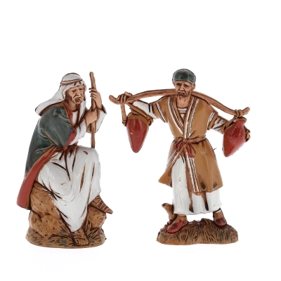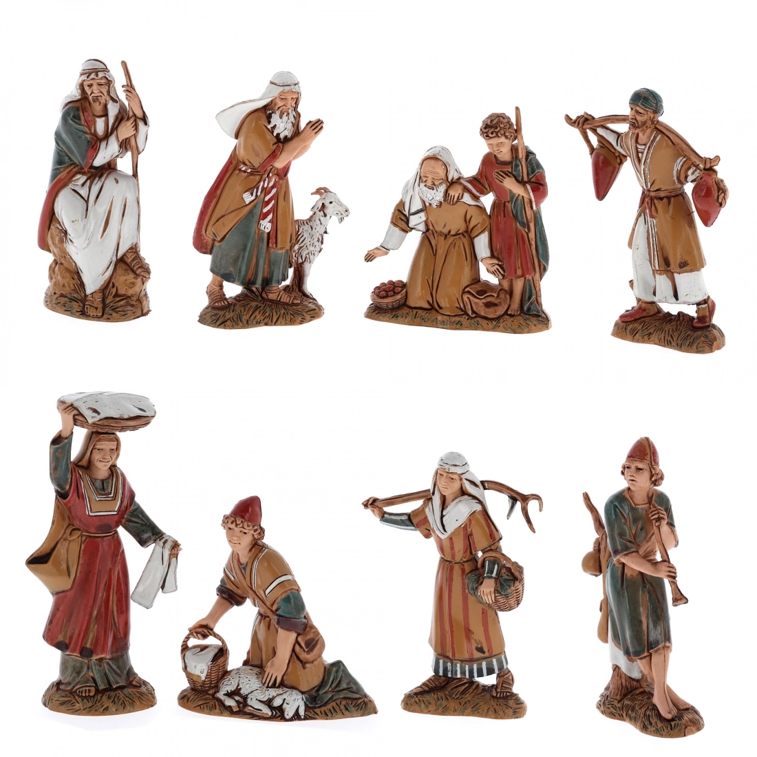 Set 8 pastori stile arabo realizzati in plastica pvc, serigrafati e rifiniti a mano. I pastori sono ritratti durante le loro occupazioni abituali e sono perfetti per arricchire il presepe. L'altezza di ogni personaggio è di circa 10 cm