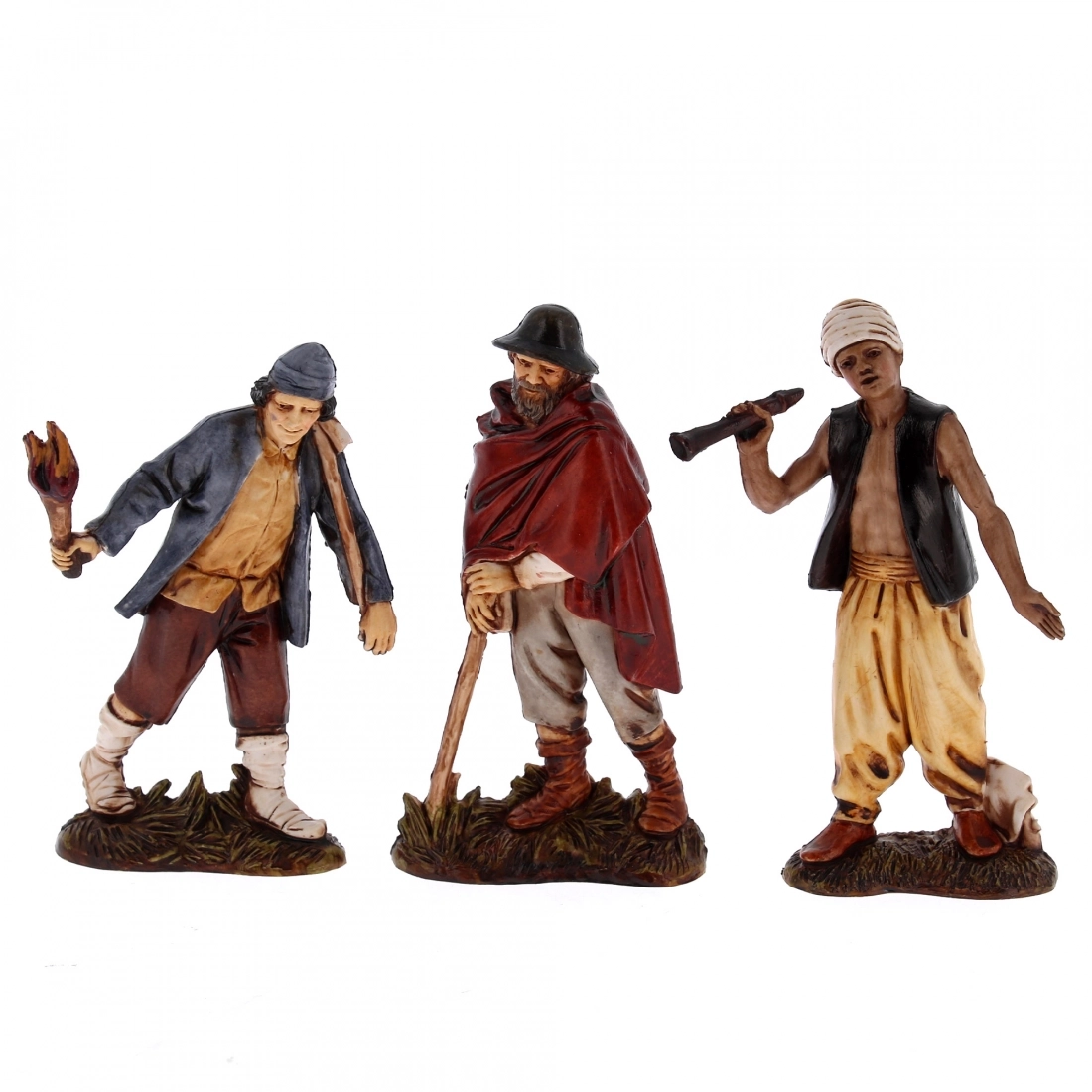 Set di 3 uomini, pastori in stile arabo realizzate in plastica pvc, serigrafati e rifiniti a mano. Questi uomini sono ritratti durante le loro occupazioni abituali e sono perfetti per arricchire il presepe. L'altezza di ogni personaggio è di circa 10 cm