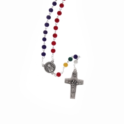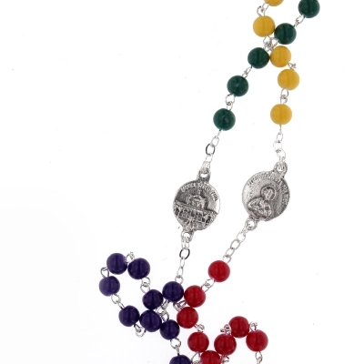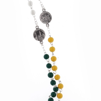 Corona rosario del Giubileo, realizzata con pietre dure laccate, delle dimensioni di 6 mm, che richiamano i colori del logo ufficiale del Giubileo 2025. Questo rosario è impreziosito da medagliette Pater da 1 cm che raffigurano le quattro basiliche di Roma da un lato e il santo relativo dall'altra: basilica di San Pietro in Vaticano, basilica di San Giovanni in Laterano, basilica di San Paolo fuori le mura e basilica di Santa Maria Maggiore. La crociera raffigura il logo del Giubileo e la croce finale è quella del Buon Pastore.