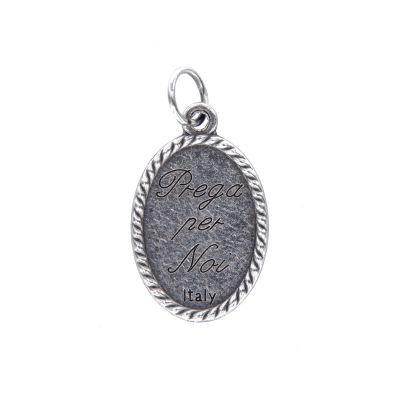 Il bordo della medaglia è lavorato con un raffinato intreccio. Sul retro è incisa la frase " Prega per noi". La medaglia è dotata di piccolo anellino che la rende adatta ad essere infilata in una catenina o in un braccialetto per essere indossata quotidianamente. Ideale come ricordo del Giubileo 2025. Prodotto interamente realizzato in Italia da azienda altamente specializzata nella realizzazione di articoli religiosi.