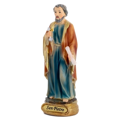 Statua di san Pietro, in resina colorata dell'altezza di 12,5 cm. finemente decorata e dipinta con precisione.