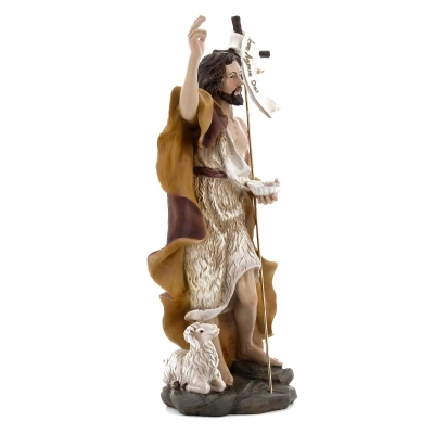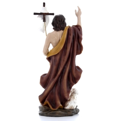 Statua di san Giovanni Battista, in resina colorata dell'altezza di 22,3 cm. finemente decorata e dipinta con precisione.
