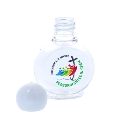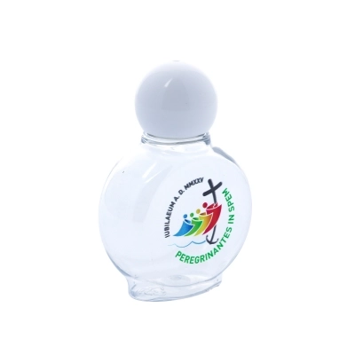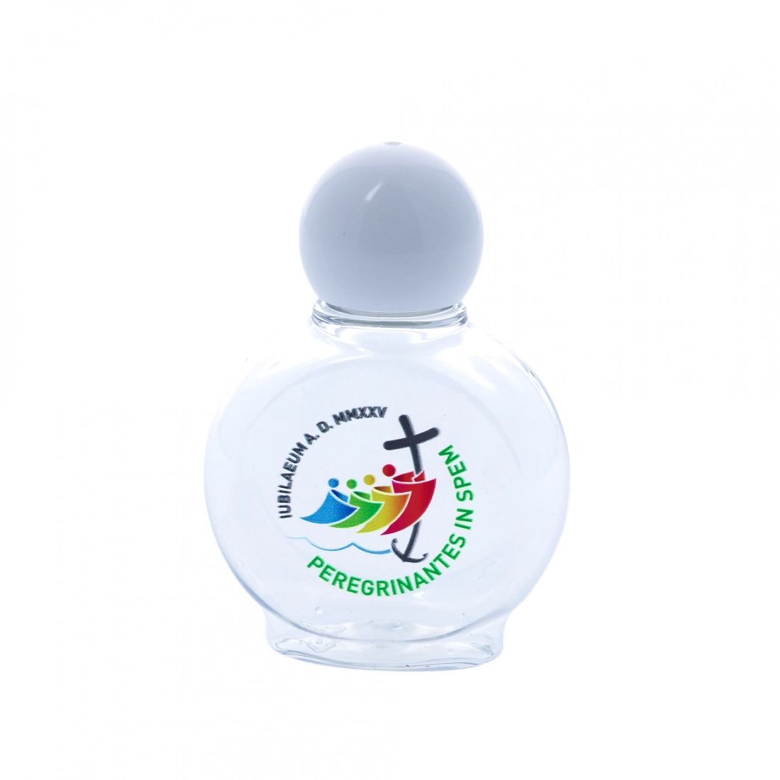 Bottiglia in PVC ideale per l'acqua benedetta, benedizioni pasquali o qualsiasi occasione in cui si voglia distribuire l'acqua benedetta ai fedeli da portare a casa. Con immagine del Giubileo 2025 Pellegrini di Speranza. Dimensioni 7x4,5 cm. Capienza 40 ml.