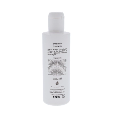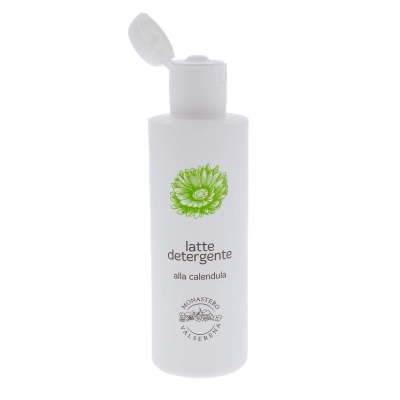 Latte detergente emolliente e idratante con estratto di calendula, prodotto e confezionato dalle suore Cistercensi di Valserena. Indicato per ogni tipo di pelle, strucca e idrata in profondità.