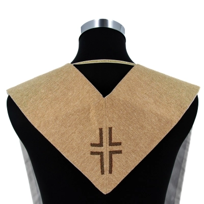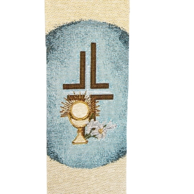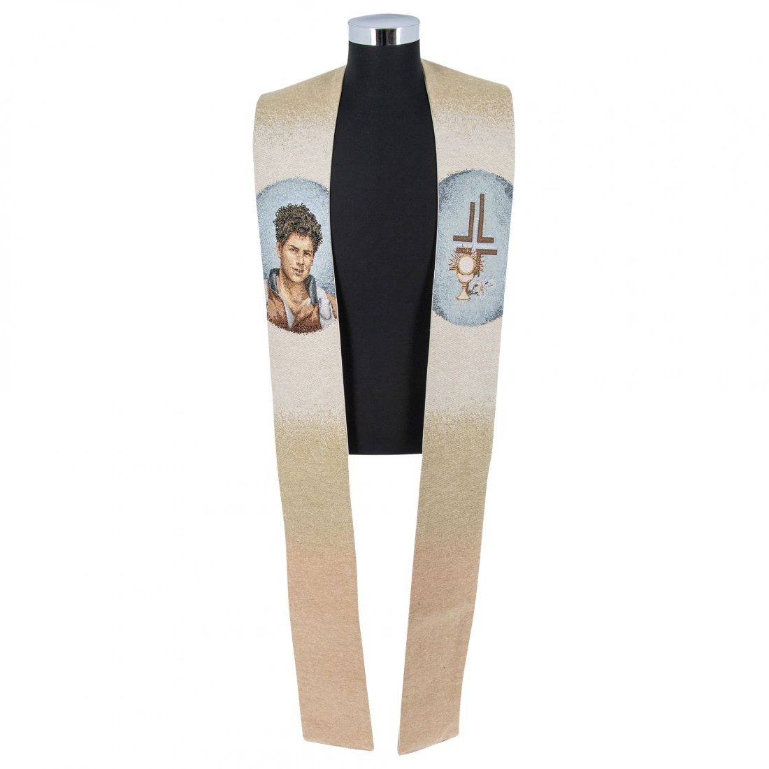 Stola sacerdotale realizzata in tessuto composto da 45% poliestere, 45% cotone e 5% elastan con ricamo, eseguito a macchina, in cui viene rappresentato Carlo Acutis. La lunghezza complessiva della stola è di 252 cm, quando indossata arriva indicativamente il ginocchio. Realizzata in Italia da un'azienda specializzata nella confezione di paramenti sacri.