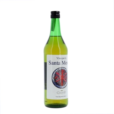 Vino per la Santa Messa bianco liquoroso dolce in bottiglia da 1 litro. Prodotto da un'importante azienda vinicola siciliana, in vitigni autoctoni, selezionando esclusivamente uve sane e genuine, che garantiscono la nascita di un vino di alta qualità, buono e autentico. Il vino per la Santa Messa dorato dolce "ex genimine vitis" (dal frutto della vite) nasce nel rispetto delle rigide regole previste dal Diritto Canonico. La genuinità e l'idoneità all'uso sacramentale sono costantemente controllate e certificate dall'ufficio Liturgico della Diocesi di Mazara del Vallo che ha la competenza territoriale per le necessarie verifiche.