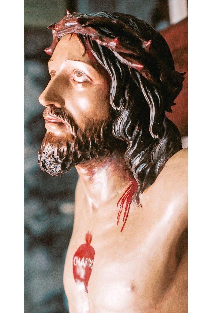 Foto del particolare di Gesù crocifisso presente nella Basilica di Collevalenza, sul retro Benedizione delle famiglie.