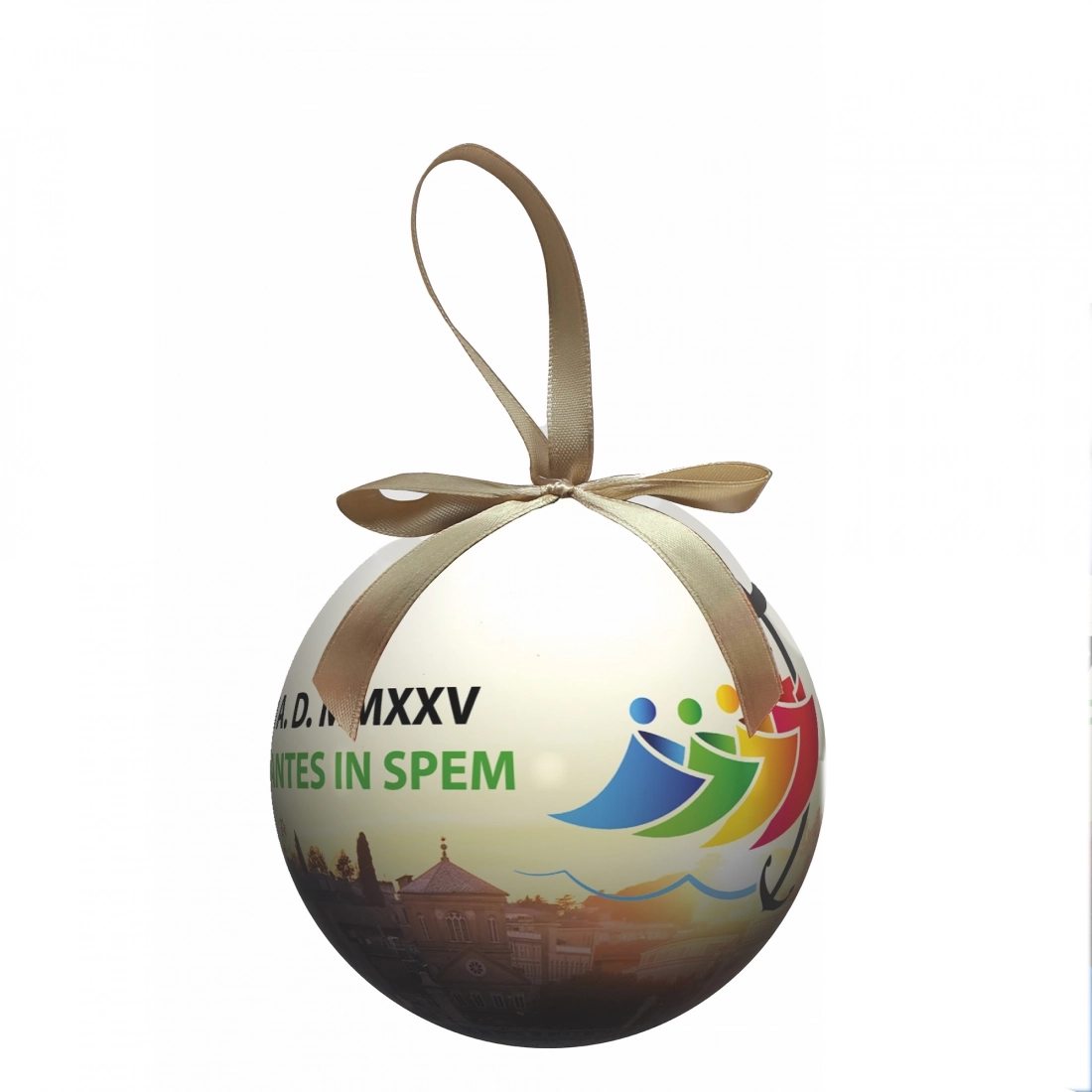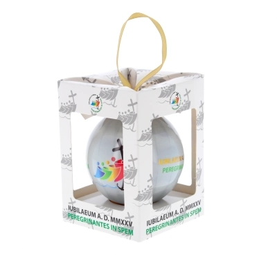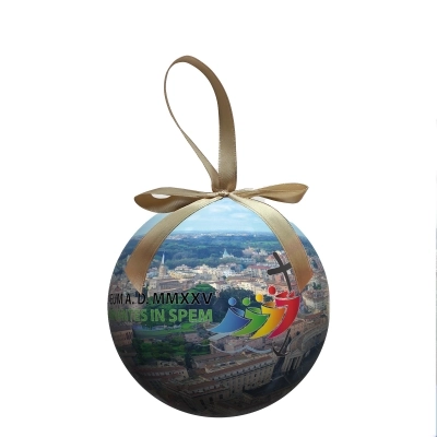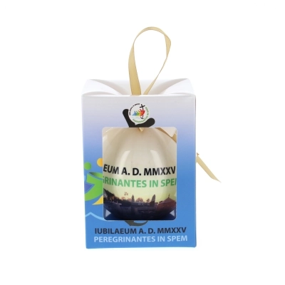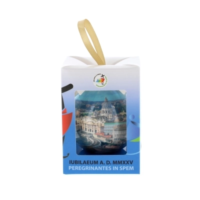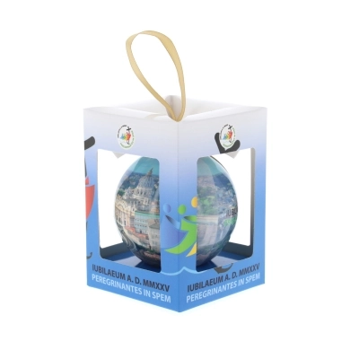Pallina del Giubileo 2025, dal diametro di 7,5 cm, in plastica piena stampata, con bellissime raffigurazioni fotografiche di San Pietro. Disponibili in quattro varianti grafiche da collezionare. Fornita in un' elegante confezione dalle dimensioni di 10,5x8 cm. Carinissima idea regalo da donare per festeggiare questo anno così importante e da tenere come ricordo del Giubileo 2025.
