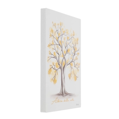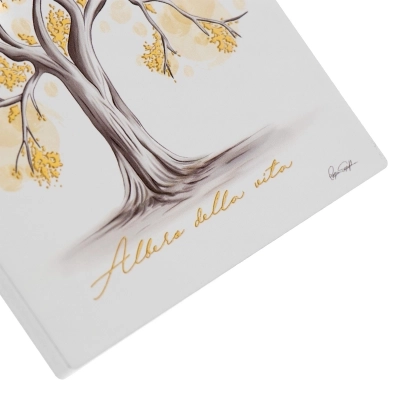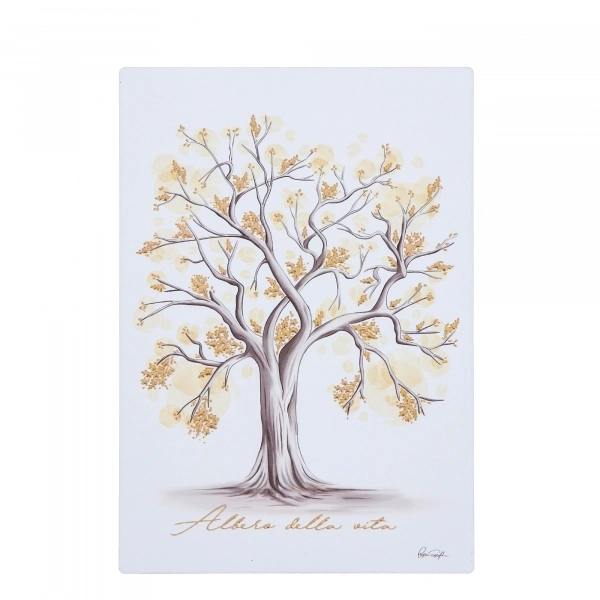 Quadretto in legno raffigurante l'Albero della Vita, impreziosito da dettagli in foglia oro che lo rendono fine e raffinato. Grazie alla grafica scelta, il quadro si adatta perfettamente a qualasiasi ambiente e a qualsiasi stile di arredamento e al contempo trasmette tutta la spiritualità dell'immagine. Il quadro è dotato di un piedistallo in metallo utile se lo si vuole appoggiare, ma è dotato anche di foro sul retro se lo si vuole appendere. Viene fornito con scatola in plastica trasparente. Totalmente realizzato in Italia con sapiente manualità artigiana.
