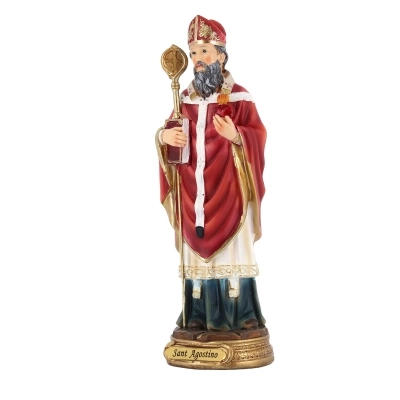 Graziosa e dettagliata statua in resina che raffigura Sant'Agostino.