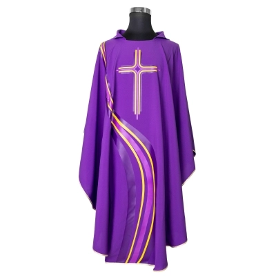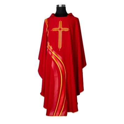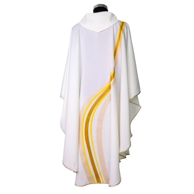Casula sacerdotale stampata in tessuto 100% poliestere microfibra, tessuto leggerissimo e adatto per i periodi più caldi. La stampa della casula si sviluppa principalmente sul davanti con una croce e un motivo di linee astratte che prosegue sul retro. Prodotto interamente in Italia, da un'azienda di artigiani esperti che da molti anni opera nel settore dei paramenti sacri, creando prodotti artigianali e di altissima qualità. Disponibile nei 4 colori liturgici.