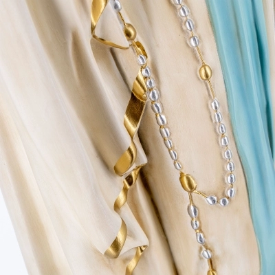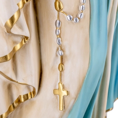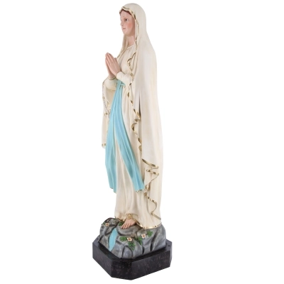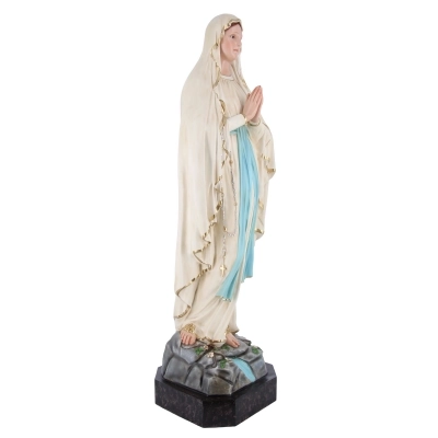 Maestosa statua della Madonna di Lourdes, realizzata in vetroresina resistente e dipinta a mano con grande cura. Alta 135 cm.