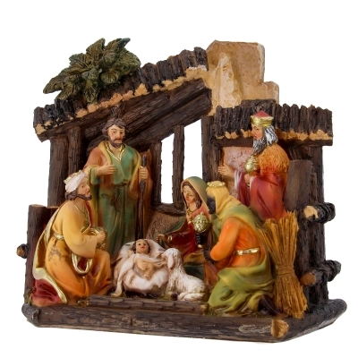 Rivivi la meraviglia del Santo Natale con questo presepe artistico raffigurante la Sacra Famiglia e i Re Magi in adorazione di Gesù Bambino. Realizzato in resina di alta qualità e dipinto a mano, ogni dettaglio – dalle espressioni dolci di Maria e Giuseppe, ai doni dei Magi e alla serenità del Bambinello – trasmette una profonda spiritualità e devozione. La capanna in stile tradizionale dona calore e realismo alla scena della Natività, rendendola ideale per decorare la casa, la chiesa o per un angolo di preghiera domestico durante il periodo natalizio.
