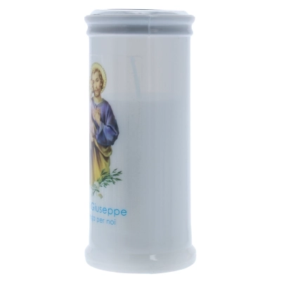 Accendi la luce della fede con questo cero votivo dedicato a San Giuseppe, modello di fede, silenzio e obbedienza, protettore della famiglia, dei lavoratori e della Chiesa universale. Realizzato in plastica resistente, presenta un’immagine a colori di San Giuseppe con il Bambino Gesù e la scritta “Prega per noi”, invito a confidare nella sua paterna intercessione.