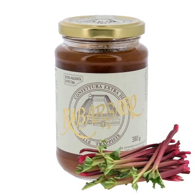 Ingredienti: rabarbaro, zucchero, succo di limone. Frutta utilizzata su 100g di prodotto finito: 80g