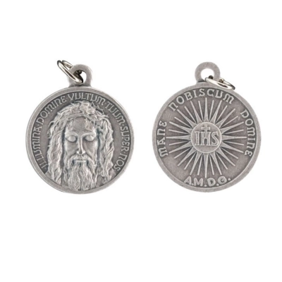 Medaglia tonda del Volto Santo, in alluminio anodizzato argento. La medaglia è dotata di anellino da utlizzare come pendente in una catenina, per essere indossata al collo. Grazie alla sua dimensione è comoda da portare sempre con sè, per esempio dentro al portafoglio o portamonete. La medaglia è ben rifinita e tutti i particolari sono ben visibili e dettagliati. La medaglia è realizzata in Italia da un'azienda artigianale e leader nella produzione di medaglie.