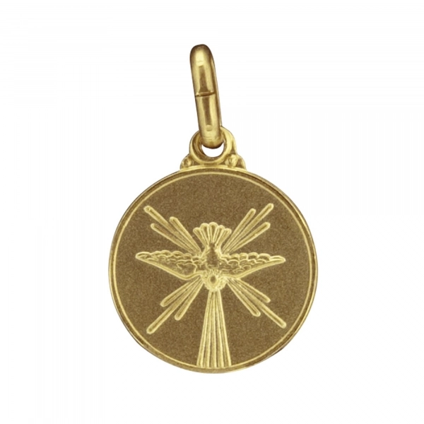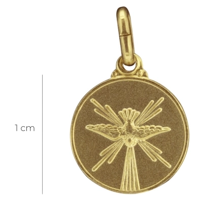 Bellissima medaglia in argento 925 baganata oro, dal peso di 0,7 gr. e diametro 1 cm, raffigurante la Colomba con i raggio simbolo dello Spirito Santo. La medaglia è dotata di anellino per poter essere appesa ad una catenina ed indossata al collo (catenina non inclusa). La medaglia è estremamente dettagliata e rifinita con cura. Realizzata in Italia da un'azienda artigianale specializzata nella creazione e produzione di medaglie. Articolo ideale da regalare in qualsiasi occasione, ma specialmente ai ragazzi che si apprestano a ricevere il Sacramento della Santa Cresima.