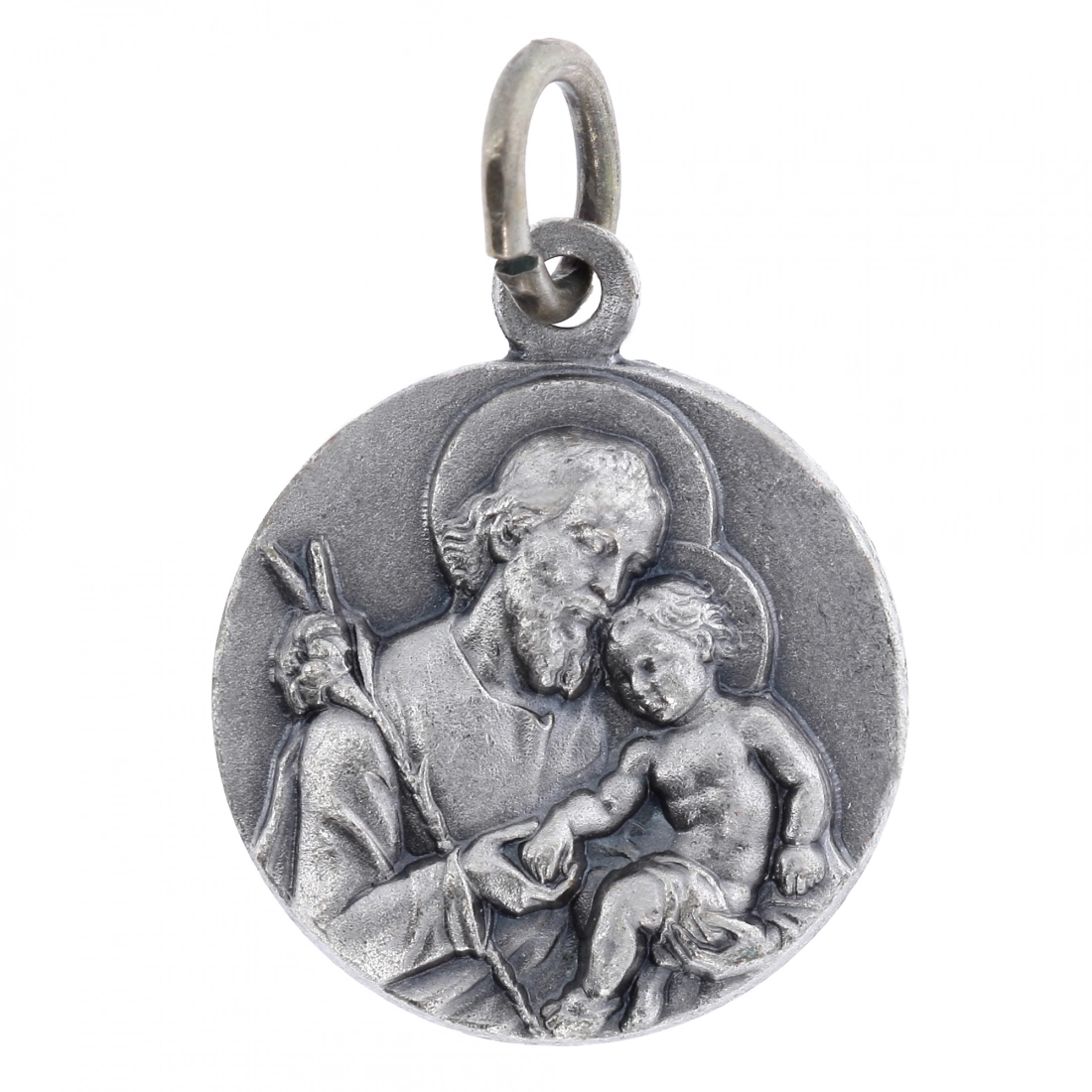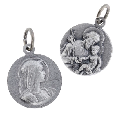 Medaglia San Giuseppe tonda, in ottone argentato, sul retro è raffigurata la Madonna Immacolata posta di profilo. La medaglia è dotata di anellino da utlizzare come pendente in una catenina, per essere indossata al collo. Grazie alla sua dimensione è comoda da portare sempre con sè, per esempio dentro al portafoglio o portamonete. La medaglia è ben rifinita e tutti i particolari sono ben visibili e dettagliati. La medaglia è realizzata in Italia da un'azienda artigianale e leader nella produzione di medaglie.