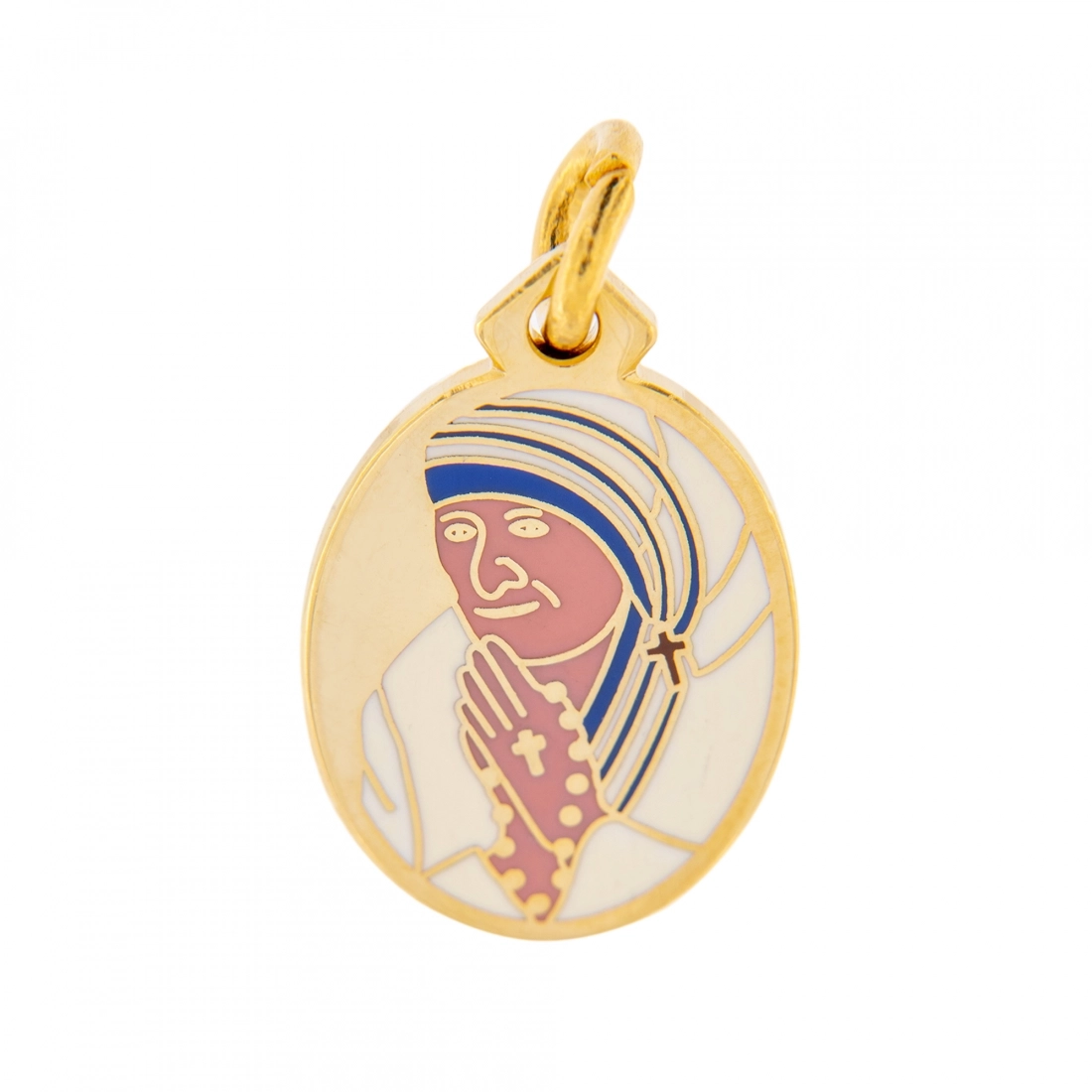 Bella medaglia in ottone bagnato oro 24K, dall'altezza di 2 cm, raffigurante madre Teresa di Calcutta. La medaglia è dotata di anellino per poter essere appesa ad una catenina ed indossata al collo (catenina non inclusa). Date le sue dimensioni ridotte, è pratica anche da tenere dentro al portafogli o dentro al portamonete. La medaglia è estremamente dettagliata e rifinita con cura, da un'azienda artigianale italiana.