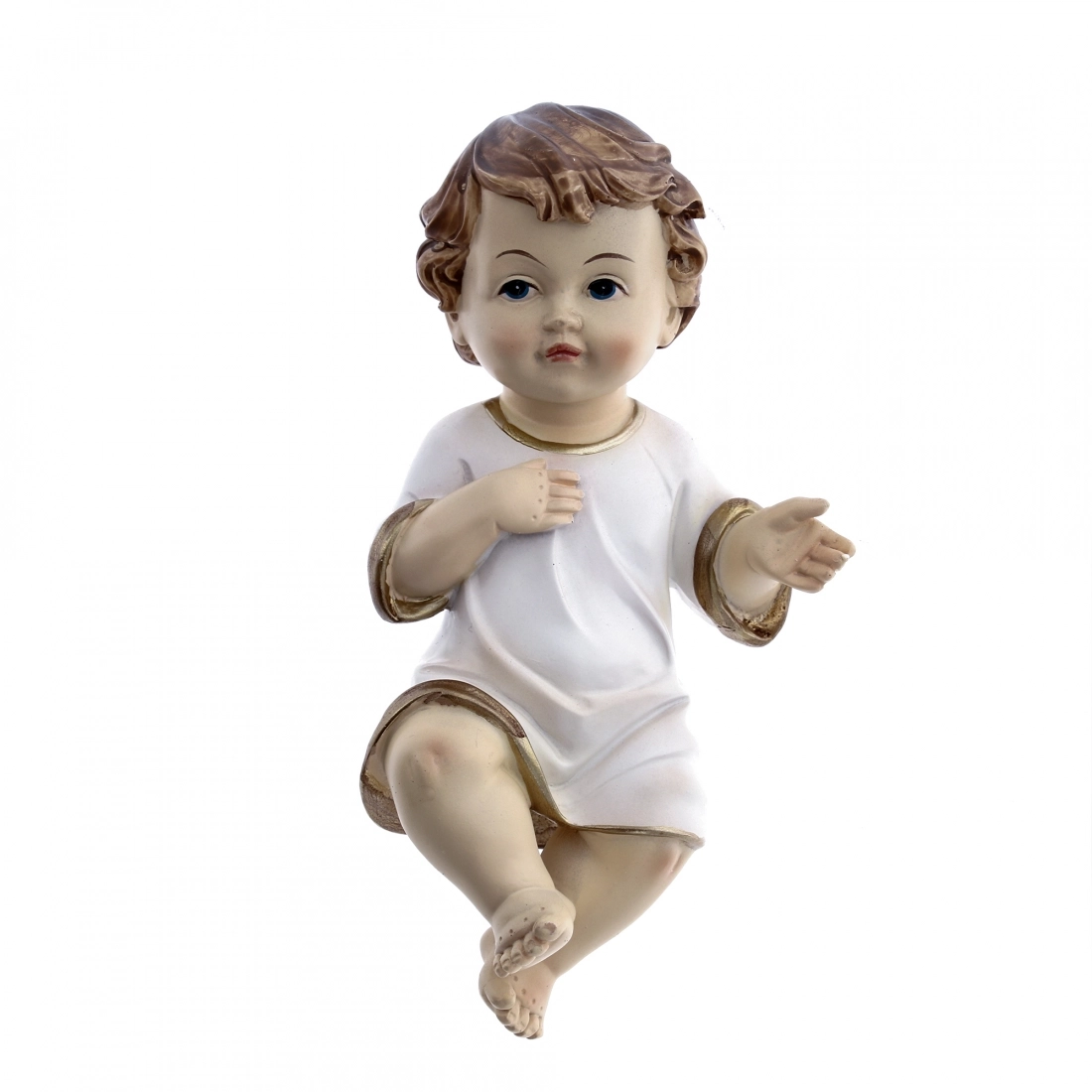 Carinissima statuina, dell'altezza di 16 cm, che rappresenta Gesù Bambino con una veste bianca ed è realizzata in resina. Ideale da donare a Natale: un piccolo pensiero di grandissimo valore!