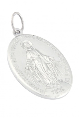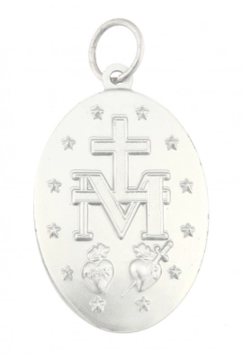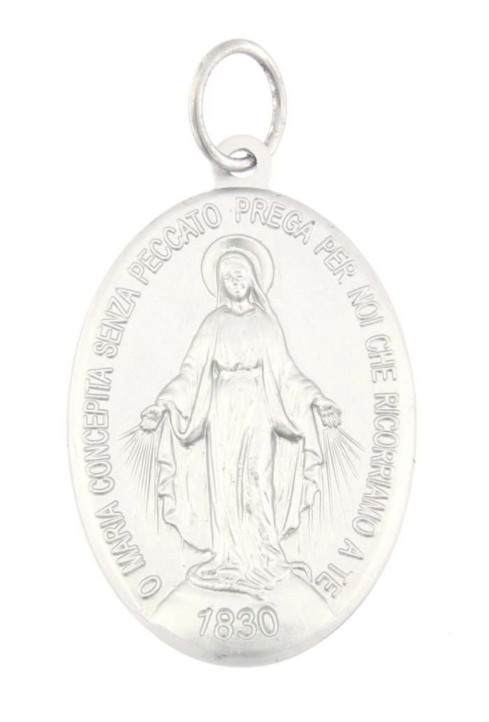 Bellissima medaglia Miracolosa in alluminio dall'altezza di 5 cm, riprodotta fedelmente come l'originale, così come apparsa alla veggente Santa Caterina de Labourè nel 1830 a Rue de Bac. La scritta nella parte frontale è in lingua intaliana e riporta la seguente frase "O Maria concepita senza peccato prega per noi che ricorriamo a te". La medaglia è dotata di anellino per poter essere appesa ad una catenina ed indossata al collo (catenina non inclusa). La medaglia è estremamente dettagliata e rifinita con cura. Realizzata appositamente per Editrice Shalom, che ne ha seguito direttamente tutta la lavorazione, dalla scultura in plastilina fino alla realizzazione del primo modello. Rigorosamente ideata e prodotto in Italia da un'azienda artigianale e leader nella produzione di medaglie.