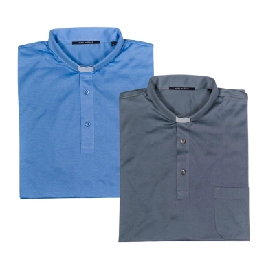 Maglia polo, con collo clergy, realizzata in tessuto 100% cotone filo di scozia, con materiali di ottima qualità. La camicia, a manica corta, è molto particolare grazie al tessuto utilizzato, infatti è un tessuto certificato prodotto con filato di cotone Makò a fibra lunga, unico per lucentezza, morbidezza, setosità e solidità dei colori. Ha un taschino posto nella parte sinistra e 4 bottoncini posti sulla parte frontale. Disponibile nei colori grigio e celeste.