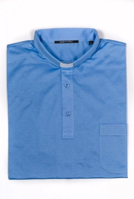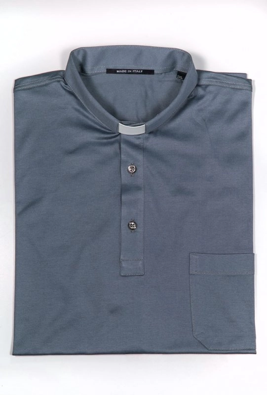 Maglia polo, con collo clergy, realizzata in tessuto 100% cotone filo di scozia, con materiali di ottima qualità. La camicia, a manica corta, è molto particolare grazie al tessuto utilizzato, infatti è un tessuto certificato prodotto con filato di cotone Makò a fibra lunga, unico per lucentezza, morbidezza, setosità e solidità dei colori. Ha un taschino posto nella parte sinistra e 4 bottoncini posti sulla parte frontale. Disponibile nei colori grigio e celeste.