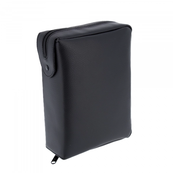 Custodia in similpelle ideata e prodotta per libri con dimensioni 11,5x16x2 cm. La custodia, all'interno, è completa di due fettucce in pelle, dalla larghezza di 4,5 cm, in cui è possibile inserire la copertina del libro, per rendere più pratica la lettura e più agevole la consultazione. Le fettucce sono ideate appositamente per i libri con la copertina con alette, per renderle utilizzabili anche se il libro è conservato nella custodia. Completa anche di 3 nastrini segnalibro, utilissimi per tenere il segno a più pagine contemporaneamente. E' dotata di fettuccia esterna, lunga 6 cm, con un bottoncino che consente la chiusura e l'apertura della custodia, ma che allo stesso tempo, dà una protezione totale al volume. Disponibile in più colorazioni per accontentare i gusti di tutti. Realizzata in Italia da un'azienda artigianale che opera da anni nel settore della pelletteria.