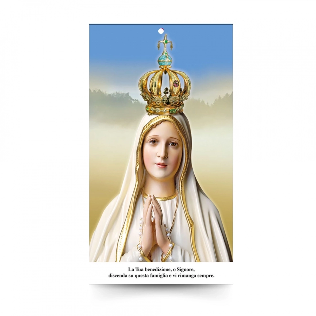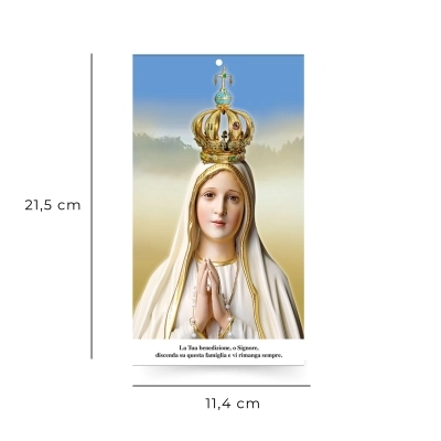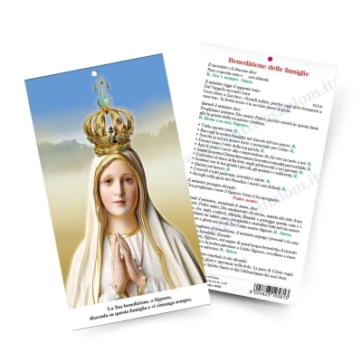 Il santino riporta nel retro la formula della "Benedizione delle famiglie" e ha un forellino perché si possa appendere. Ottima idea regalo per le famiglie durante la Benedizione Pasquale.