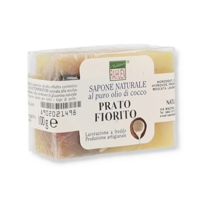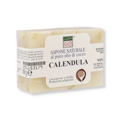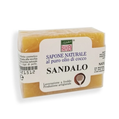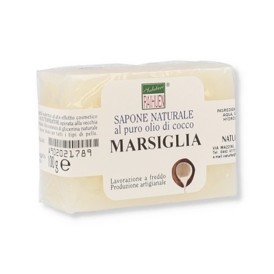 Sapone artigianale, dalla delicata azione detergente, è realizzato secondo l’antica tradizione artigiana con il metodo d’impasto a freddo, che consente di mantenere inalterati i principi attivi termolabili. La base della formulazione è costituita solo da olio di cocco alimentare puro al 100%. Durante il processo di saponificazione si forma naturalmente la glicerina, importantissima ai fini dell’emolienza di un buon sapone. La presenza della glicerina è evidente poiché permette ai nostri saponi di poter essere tagliati a coltello, a differenza di quelli sintetici che si presentano duri e pietrosi. Perfetto sia per il viso che per il collo, è ricco di schiuma e rende la pelle morbida e vellutata.