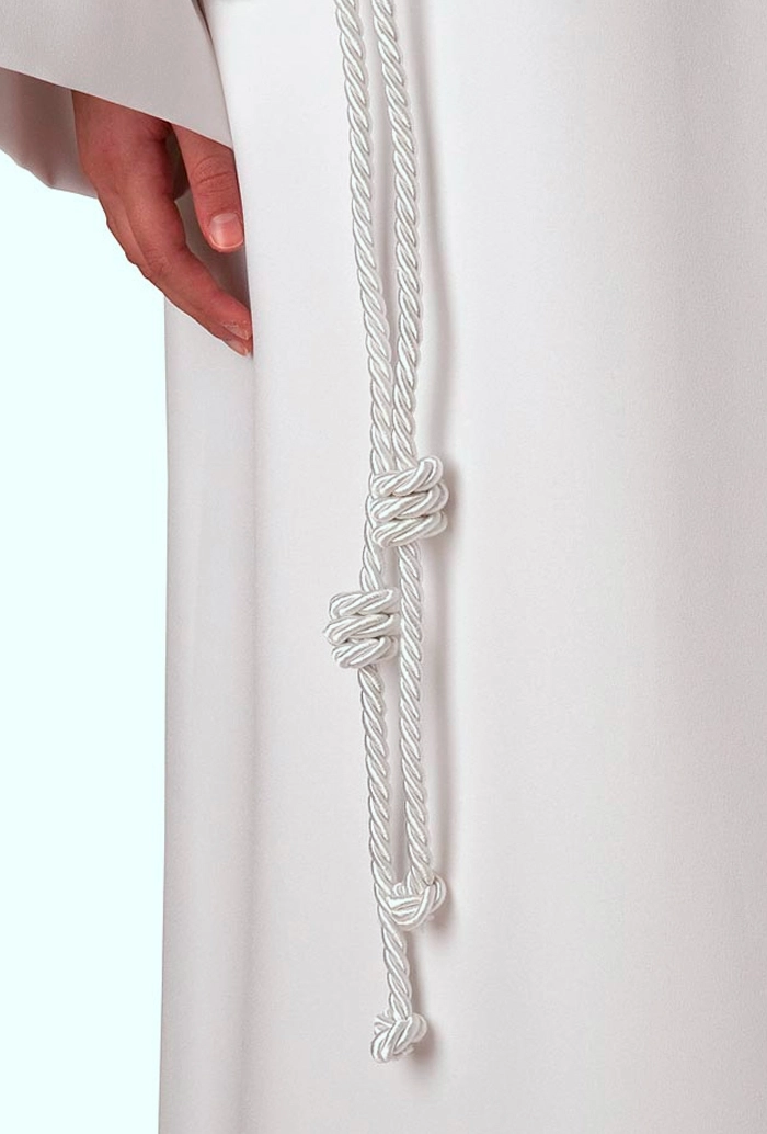 Cingolo per bambini per tunica Prima Comunione, in viscosa con nodini nella parte finale.