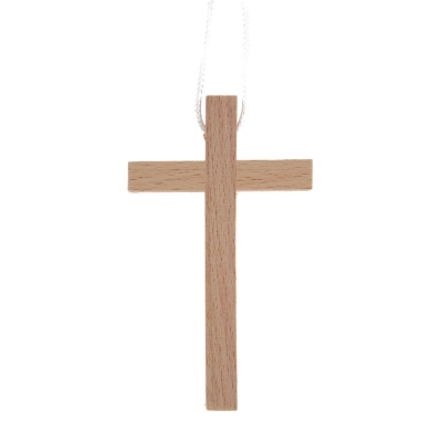 Croce realizzata in legno, delle dimensioni 6x10 cm. Dotata di cordino bianco, questa crocetta viene indossata sulla tunica ( o sul vestito) da tutti i bambini nel giorno della loro Prima Comunione.