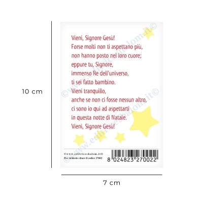 Santino a tema natalizio per bambini. Sul fronte: una bellissima immagine della Natività; sul retro: la preghiera "Vieni, Signore Gesù…".