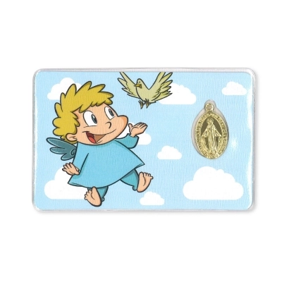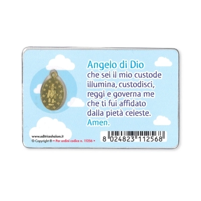 Sul retro è riportata la preghiera "Angelo di Dio" a cui è dedicato questo santino, mentre sulla parte anteriore una simpatica illustrazione.