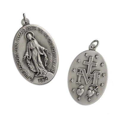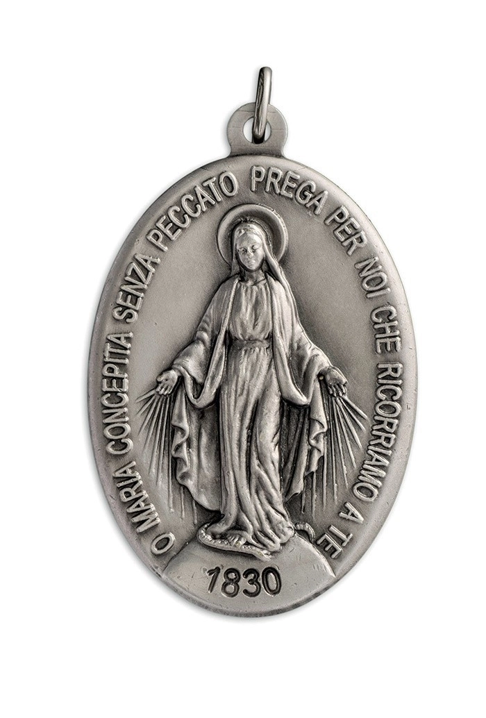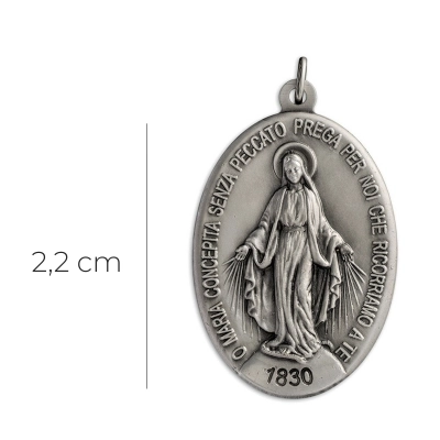 Bellissima medaglia Miracolosa in argento 925, dal peso di 4,3 gr. e altezza di 2,2 cm, riprodotta fedelmente come l'originale, così come apparsa alla veggente Santa Caterina de Labourè nel 1830 a Rue de Bac. La scritta nella parte frontale è in lingua italiana e riporta la seguente frase "O Maria concepita senza peccato prega per noi che ricorriamo a te". La medaglia è dotata di anellino per poter essere appesa ad una catenina ed indossata al collo (catenina non inclusa). La medaglia è estremamente dettagliata e rifinita con cura. Realizzata appositamente per Editrice Shalom, che ne ha seguito direttamente tutta la lavorazione, dalla scultura in plastilina fino alla realizzazione del primo modello. Rigorosamente ideata e prodotto in Italia da un'azienda artigianale e leader nella produzione di medaglie.
