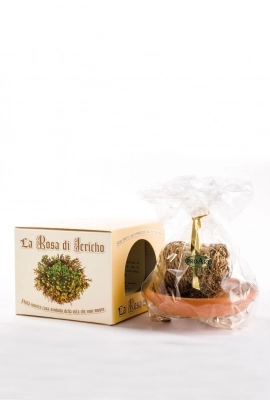 Simbolo della vita che non muore. Pianta di origine desertica che privata di acqua appare secca e senza vita, ma se alimentata con acqua, dischiude i suoi rami, tornando ad essere verde e vellutata. La Rosa di Jericho è considerata per questo motivo simbolo della vita che non muore. La vita che alimentata dall’ amore fa rifiorire sentimenti di pace e di serenità, ravviva la speranza e dona prosperità. Per far rifiorire la Rosa di Jericho: immergere la pianta in un ampio contenitore pieno d’acqua. I rametti secchi, nel giro di qualche ora torneranno verdi. Una volta che si è aperta, la rosa va posata su un piattino di terracotta e innaffiata ogni giorno per non più di 7 giorni consecutivi. Si lascia quindi seccare fino a che si avvolgerà nuovamente su se stessa per tornare al suo stato quiescente. Si attenderanno almeno 30 giorni prima di rimetterla in acqua, nel frattempo la si terrà disidratata. Il suo adattamento ad ambienti estremamente aridi, le consente di sopravvivere senza acqua e terra per anni.