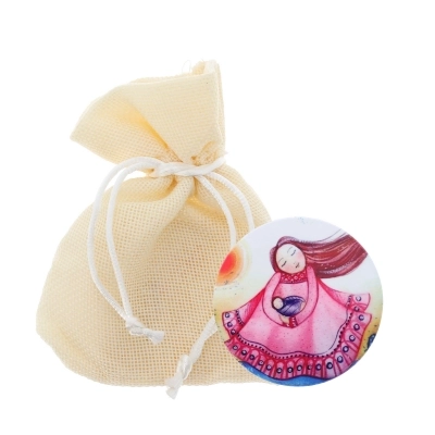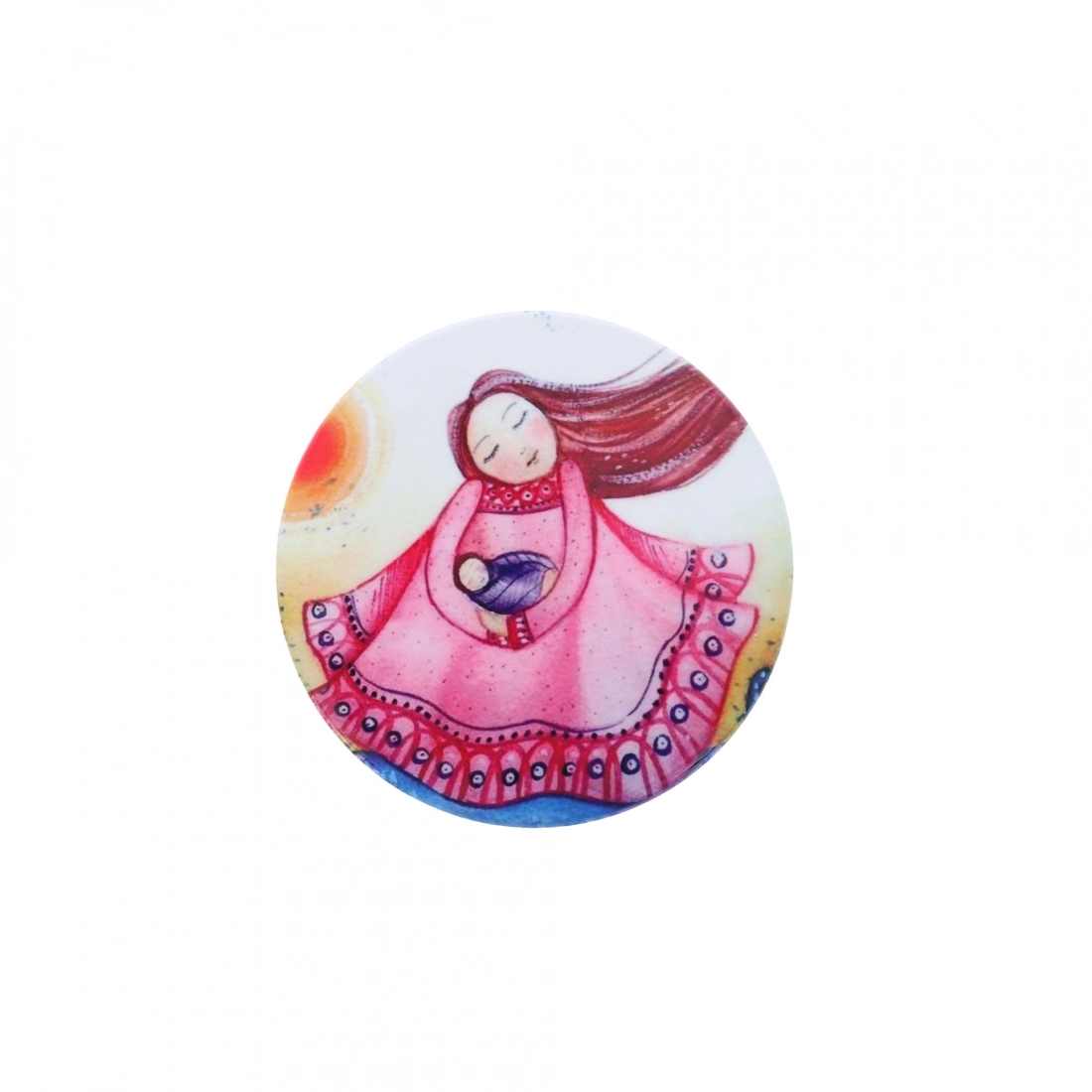 Bellissimo magnete d'Autore, con una raffigurazione delicata e raffinata di una mamma che tiene in braccio il suo bambino, in una bellissima scena quotidiana nel momento della nanna. Carinissima idea regalo da donare in qualsiasi occasione. Adatta anche a bomboniera per una Nascita o battesimo.