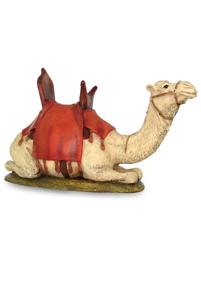 Statuina raffigurante un cammello seduto, ideale per la personalizzazione del proprio presepe, si adatta a presepi con statuine alte circa 10 cm. La statuina è realizzata in resina dipinta a mano. Il modello è stato realizzato dal famoso scultore Martino Landi.