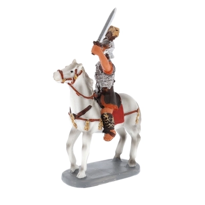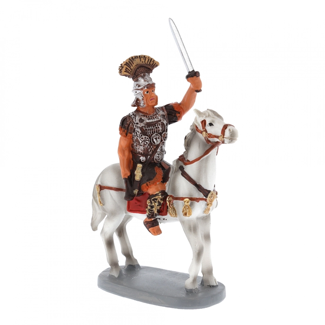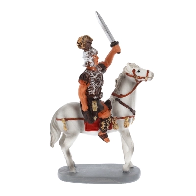 Statuina raffigurante un soldato a cavallo con spada sguainata, ideale per la personalizzazione del proprio presepe, si adatta a presepi con statuine alte circa 10 cm. La statuina è realizzata in resina dipinta a mano. Il modello è stato realizzato dal famoso scultore Martino Landi.