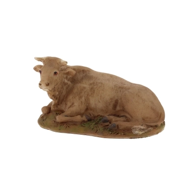 Statuina del bue seduto, ideale per la personalizzazione del proprio presepe, si adatta a presepi con statuine alte circa 10 cm. La statuina è realizzata in resina dipinta a mano. Il modello è stato realizzato dal famoso scultore Martino Landi.