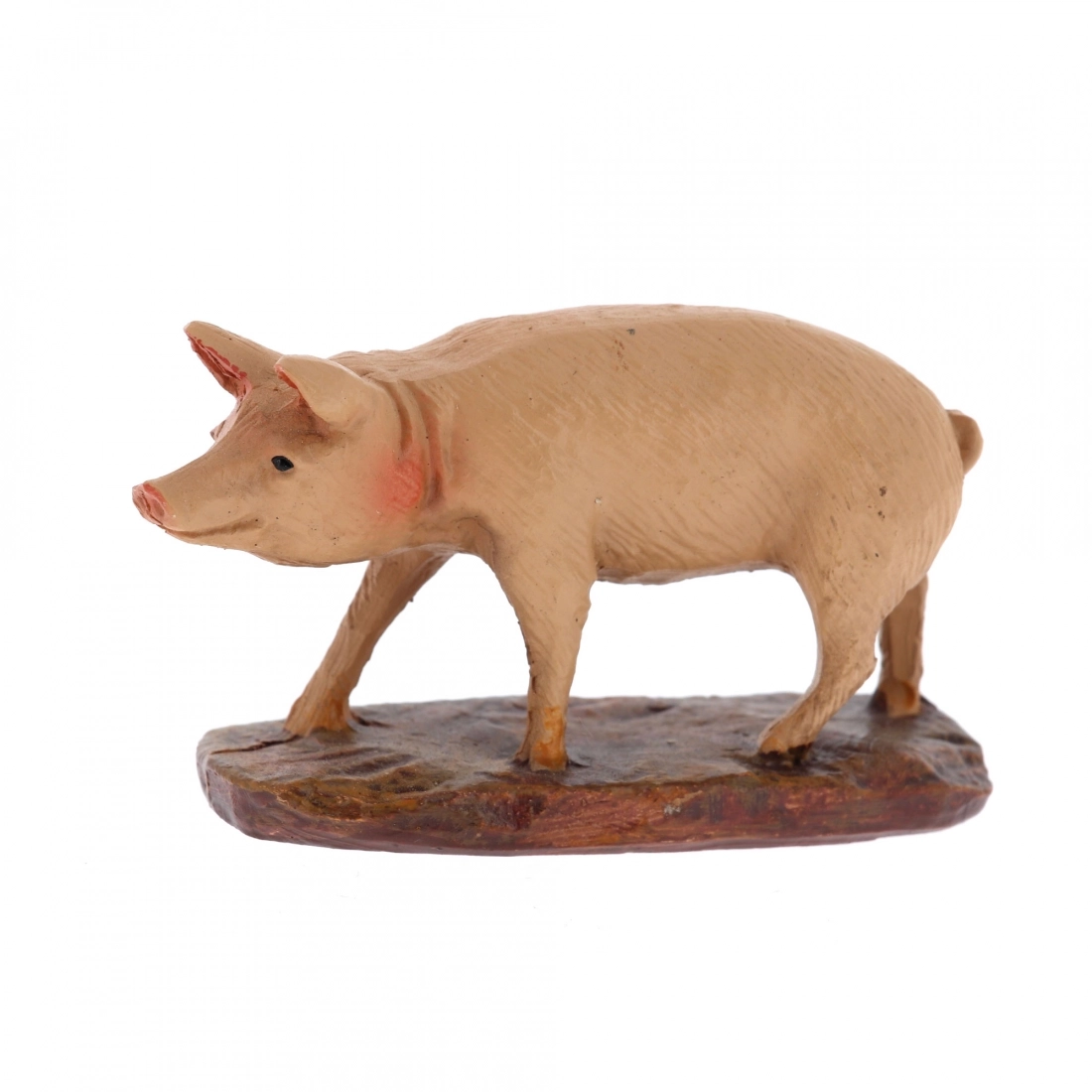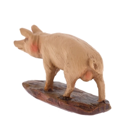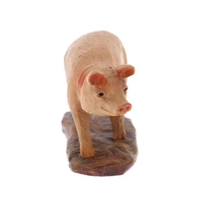 Statuina raffigurante un maialino, ideale per la personalizzazione del proprio presepe, si adatta a presepi con statuine alte circa 10 cm. La statuina è realizzata in resina dipinta a mano. Il modello è stato realizzato dal famoso scultore Martino Landi.