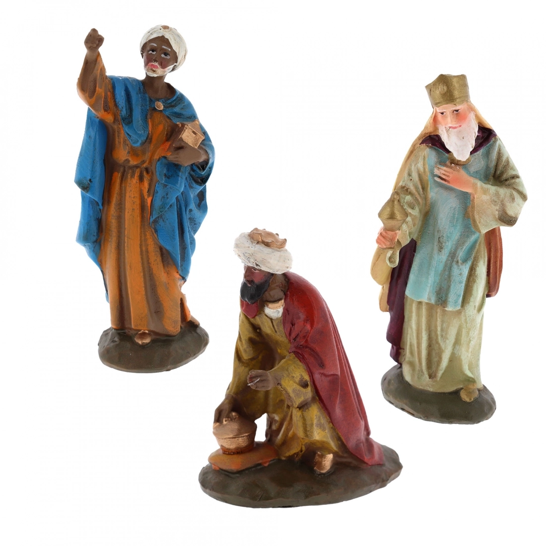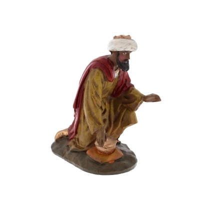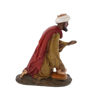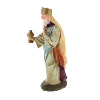 Statuina dei Re Magi ideale per la personalizzazione del proprio presepe, si adatta a presepi con statuine alte circa 10 cm. La statuina è realizzata in resina dipinta a mano. Scegli il personaggio che ti occorre tra Gaspare (h. 7,5 cm larg. 2,5 cm prof. 6 cm), Melchiorre (h. 10 cm larg. 4,5 cm prof. 2,5 cm) e Baldassarre (h. 11 cm larg. 4,5 cm prof. 2,5 cm). Tutti i modelli sono stati realizzati dal famoso scultore Martino Landi.