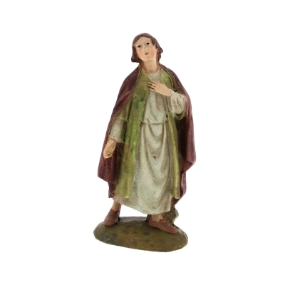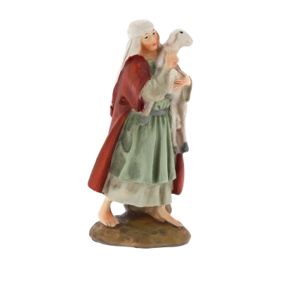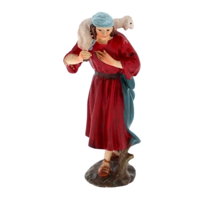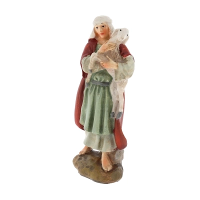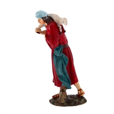 Scegli il personaggio che ti occorre tra Pastore con pecora in braccio (h. 10 cm), Pastore viandante (h. 10 cm), Contadinella con la brocca (h. 11 cm), Contadino con la zampogna (h. 10,3 cm), Contadino pifferaio (h. 10 cm), Contadino con lanterna (h. 10 cm), Contadino meravigliato (h. 10 cm), Contadina con gallina (h. 10 cm), Contadino legnaio (h. 13 cm), Pastore con pecora inginocchiato (h. 9,5 cm), Pastore con agnello in spalla (h. 10 cm) e il Pastore dormiente (h. 3 cm e lunghezza 10,5 cm).