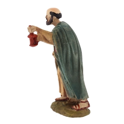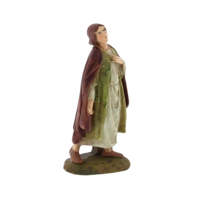 Statuina raffigurante pastori e contadini in diverse situazioni quotidiane, ideale per la personalizzazione del proprio presepe, si adatta a presepi con statuine alte circa 10 cm. La statuina è realizzata in resina dipinta a mano. Tutti i modelli sono stati realizzati dal famoso scultore Martino Landi.